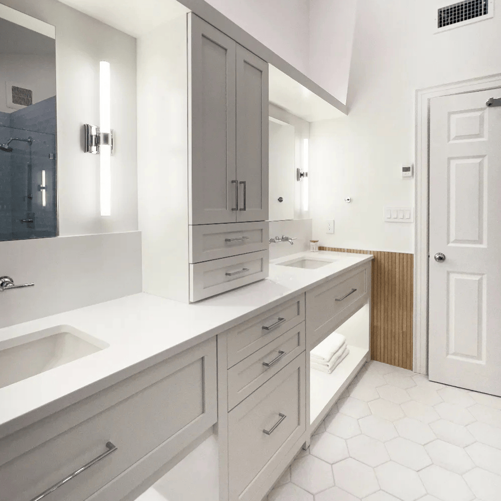 The mind perceives clutter as chaos. A bathroom that flows, where each fixture, tile, and storage space feels intentional, instantly lowers tension. Clean lines, open vanities, and hidden storage allow the eye to rest.